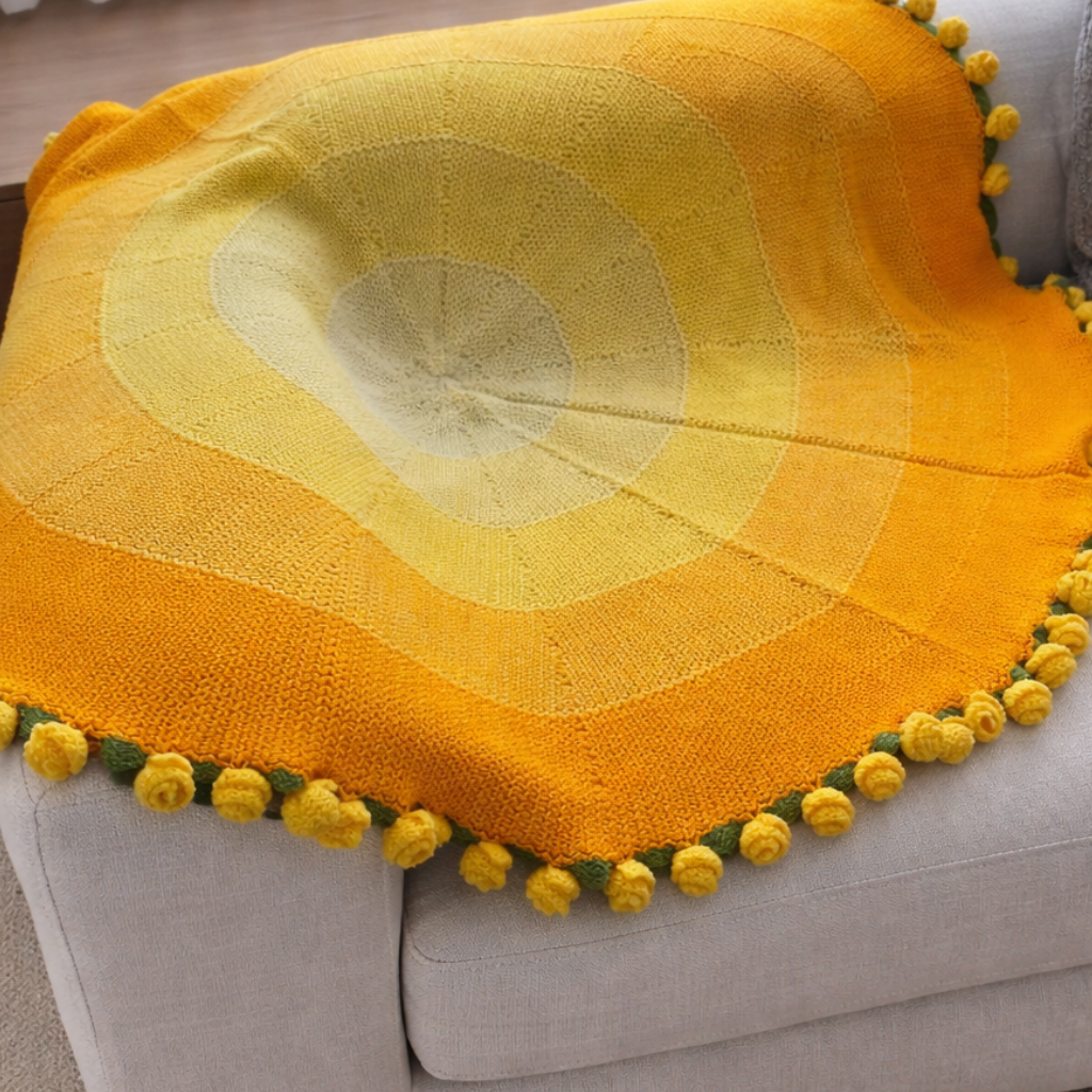 Azure Oasis Bouquet Blanket – Whimsical Blue Gradient Crochet Throw & Floral Gift